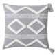 A soft decorative pillow featuring a white base with textured diamond patterns and gray geometric embroidery. Finished with tassels on each corner, this cushion adds a modern boho touch to any living room or bedroom.