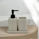 Thread ceramic 4 piece set Includes soap dish, toothbrush holder, soap pump, tumbler that everything you would need for your bathroom, to organize your toiletries