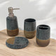 Ceramic 3-piece set+paired with bamboo and wood beige sand dots Thus set Includes soap dish, soap lotion dispenser, tumbler cup and everything you would need for your bathroom, to organize your toiletries