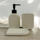 Go to the shopCeramic 3-piece set+paired with bamboo and wood beige sand dots Thus set Includes soap dish, soap lotion dispenser, tumbler cup and everything you would need for your bathroom, to organize your toiletries