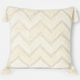 A beige decorative pillow featuring vertical rows of tufted infinity loop patterns in off-white. The design is framed with tufted borders on the top and bottom and finished with tassels on each corner, creating a textured and bohemian-inspired look perfect for sofas or beds.